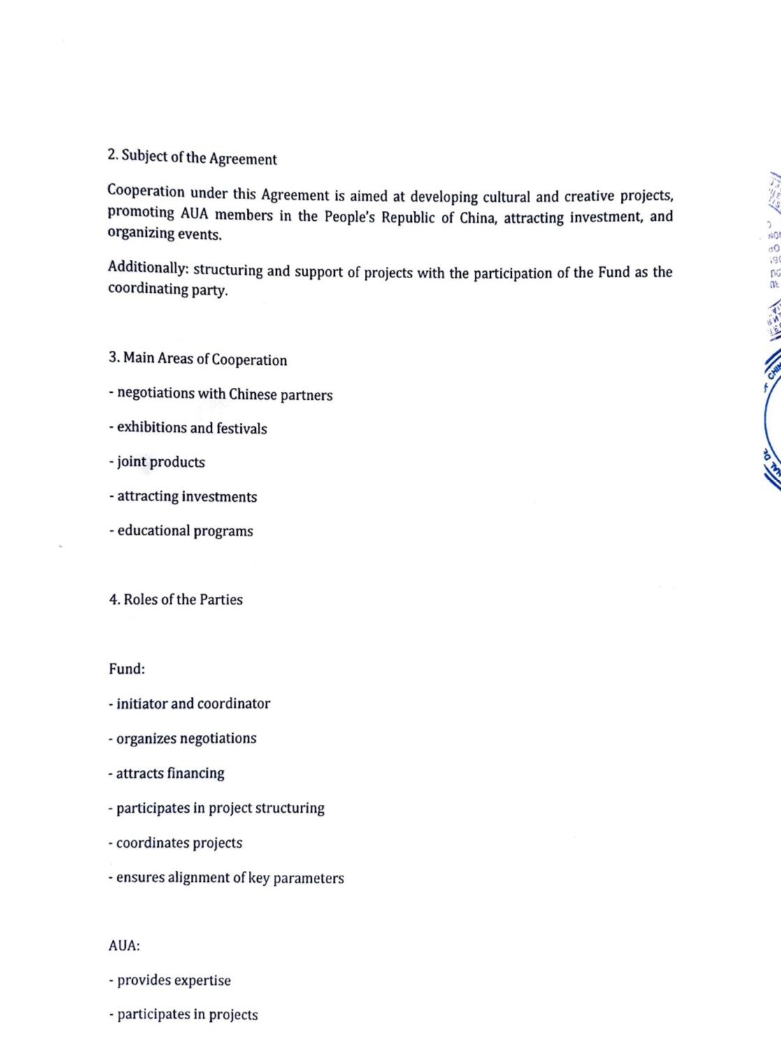 The cooperation is aimed at developing cultural and creative projects, as well as attracting investments for the development of the Union.