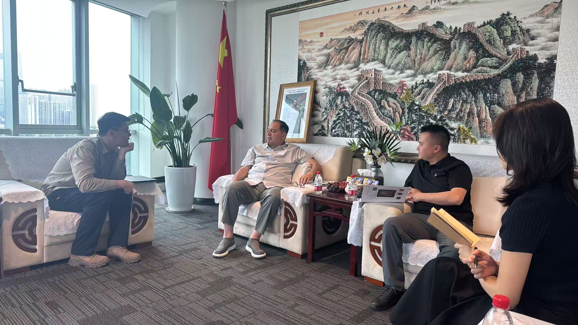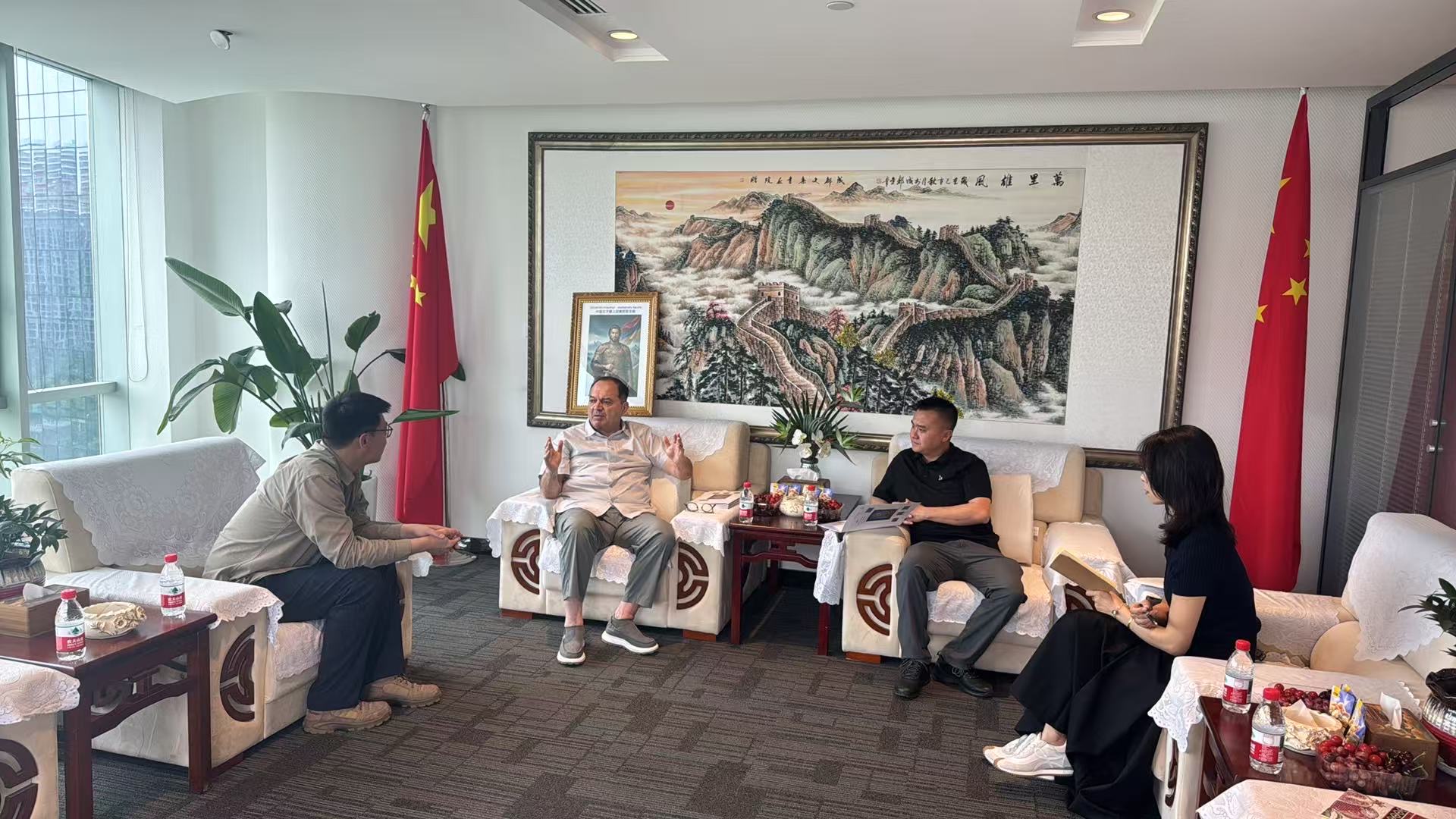 The delegation included Mr. Wen — Director of the Office of the Coordination Council for Strengthening Ties among Social Organizations under the Department of Culture and Tourism of Sichuan Province, and President of the Hanhe Academy of Calligraphy and Painting of Sichuan; and Ms. Zhu — General Director of LanShi Media.